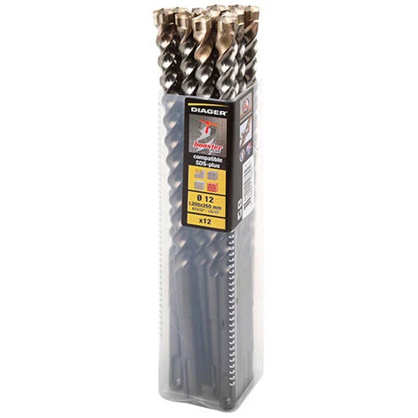 - Foret béton : 12 forets béton Booster 3 taillants compatibles SDS+ D. 14×260 mm
